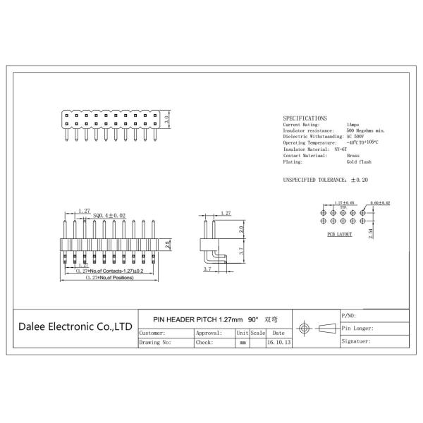 Single Plastic Dual/Single Row DIP 90° Type Pin Header Connector 1.27mm Pitch